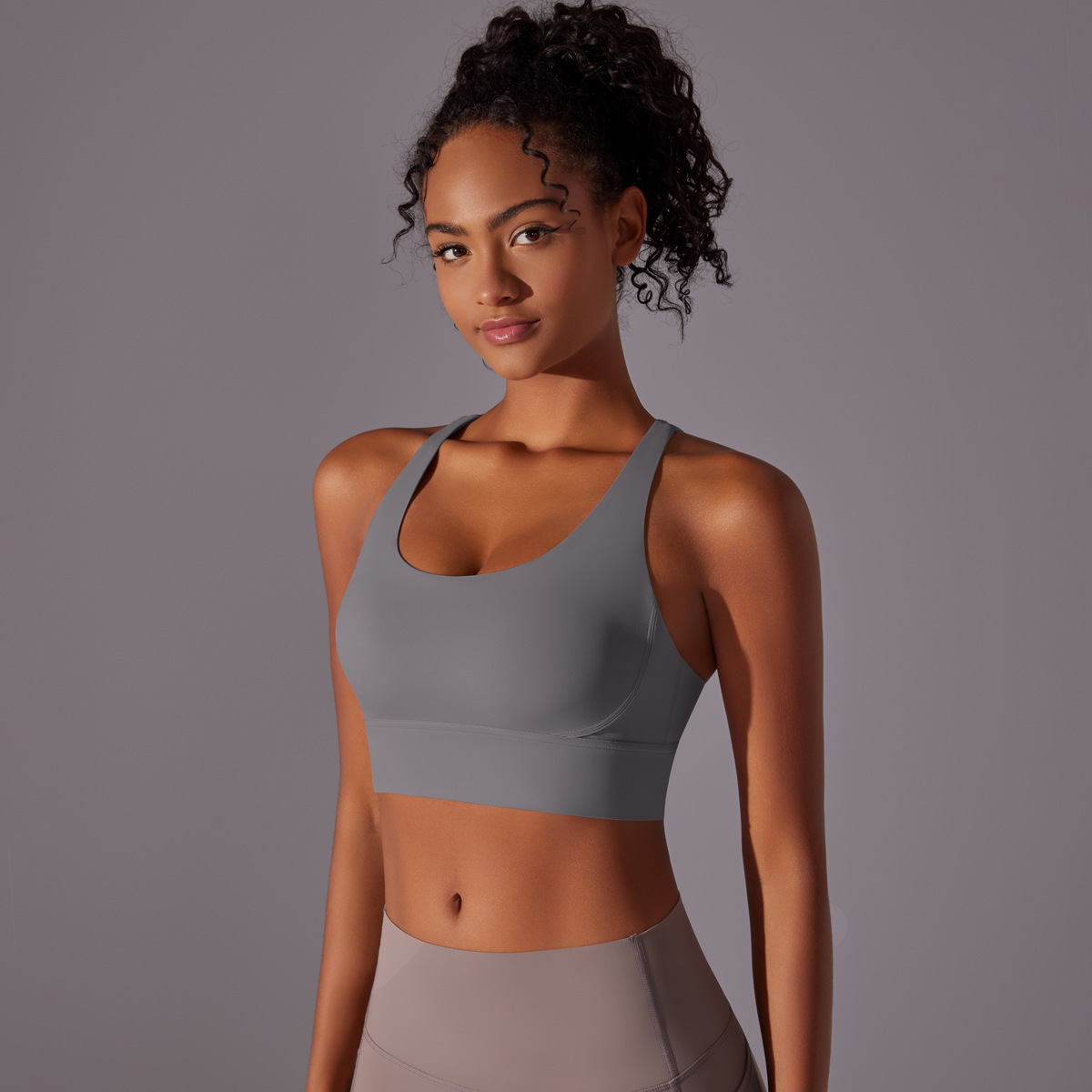 Super breathable and flattering! The Grey color is elegant, and the cross-back design gives great support. It fits like a dream and is great for medium to high-impact workouts.