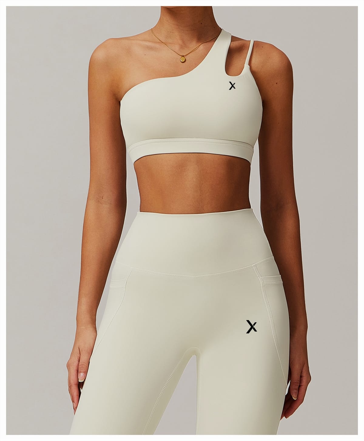 The Evolve One-Shoulder Bra in Cream White is a clean, elevated essential for your activewear rotation. It brings a minimal, refreshing aesthetic while offering medium support through every move, making it ideal for light workouts and effortless styling.