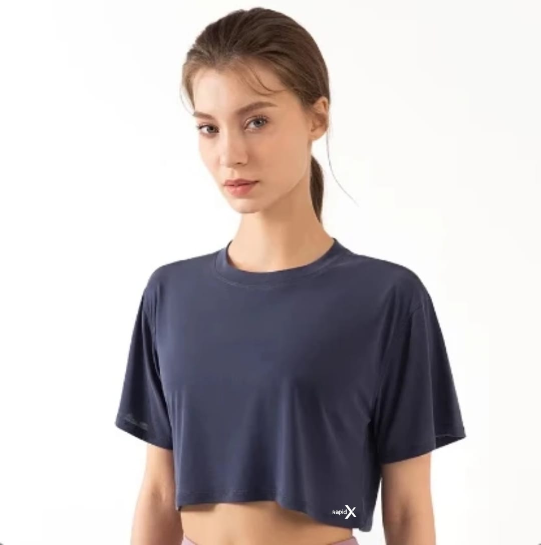 💪 Conquer your day with the Breeze Loose Fit Crop Top in Navy Blue!